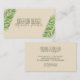 This modern tropical business card features a trendy palm leaf and modern text. It is perfect for interior designers and any modern trendy businesses.
