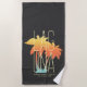 Modern Palm Tree Summer Beach Vacation Custom Name Beach Towel. You can replace with your own words. Perfect for birthday, road trip, travel or summer vacation gift