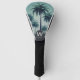 Personalised golf head cover featuring a modern tropical design. Customise the golf head cover with your name and desired monogram. Modern palm trees. Use the template to create your own personalised golf head cover.