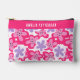 Modern Tropical Pink Floral Personalised Name Accessory Pouch