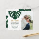 Elegant, modern, and simple green watercolor tropical beach swiss cheese monstera leaf on white background with faux printed gold foil typography summer Save-the-Date wedding Postcards. This classic and sophisticated design is perfect for the trendy and stylish marrying couple. Personalise with your own message on the front as well as a customised monogram initial on the back. All photo print design.