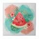 Modern Tropical Watermelon & Hibiscus Watercolor Tile