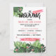 Festival theme Wedding Invitation. Featuring green foliage with Monsteria leaves and pink flower buds.