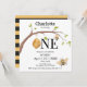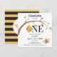 Modern Turning One Black Yellow Bee Birthday Invitation