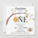 Beautiful girl turning One Birthday Party invitation featuring a gorgeous beehive design including a beehive hanging of a tree, beautiful buzzing bees Personalise this beautiful birthday party invitation with girl's name and party details such as date, time, location, address and rsvp if needed.