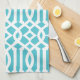 Modern Turquoise and White Trellis Pattern Tea Towel