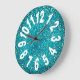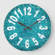 Modern Turquoise Blue Glitter Large Numbers Clock