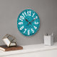 A modern large numbers wall clock with a glam Turquoise Blue Glitter background.