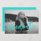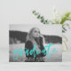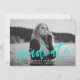 Invite guests to your graduation party in style with our Modern Brushed Script yellow graduation invitations. The unique graduation party invite features 'graduate' in a bright turquoise modern hand-lettered script font overlay on the front. Add your favourite photo and the graduate's name, school, and graduating year. Add your graduation party details to the back.
