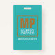 Modern Turquoise Copper Square Monogram Logo Photo ID Badge