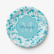 Modern Turquoise Floral Girly Monogram With Name Paper Plate