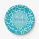 Modern Turquoise Giraffe Print Monogram With Name Paper Plate