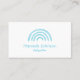 Modern babysitter business cards. Features a Turquoise rainbow drawing using a crayon.