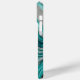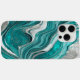 Elegant iPhone case using turquoise green shades with silver highlights marble flowing pattern