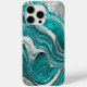 Elegant iPhone case using turquoise green shades with silver highlights marble flowing pattern