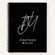 This personalised notebook features a modern and stylish design with a two initial script monogram and your name in a clean and simple sans serif font on a solid black background. The notebook is perfect for personal use, including journalling, note-taking, or as a thoughtful gift for friends and family.