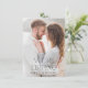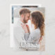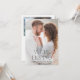 This design shows off 2 of your favourite engagement photos. The front of the post wedding reception invitation features 'We're Eloping' in a gorgeous, modern ligature font, followed by your names, and your full bleed engagement photo.
