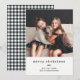 This simple and stylish holiday card says "merry christmas" in typewriter text, with a trendy botanical branch and your favourite personal photo. The background is decorated with a black gingham pattern.