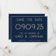 Modern Typography Navy and Gold Wedding. Modern elegance with this fully customisable stylish typography design. Easily personalise the text and, if you have a wedding website, automatically generate a QR code for it on the back by replacing the sample URL to that of the URL of your wedding website. You can delete the sample QR code if not requied via the edit further option, where you can also edit text colours and styles and background colours on each side if you so wish.