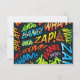 Trendy modern comic book pop art themed speech bubble superhero wedding RSVP. Designed by Thisisnotme©