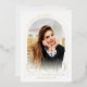 This real gold foil simple minimalist arch graduation announcement features a delicate arch frame, 2 photo templates and elegant modern typography.