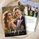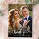 Modern Elegant Typography Wedding 2 Photo Thank You Card. Stylish Minimalist wedding thank you template featuring a full vertical photo on the front with the text "Thank You" in a hand lettered calligraphy swash tail script font overlay in white on the picture. At the back side one photo and thank you message template. Easy to personalise your name and thank you message. If you prefer to handwrite your note, just delete the sample text to make more space. If You need help or matching item, please contact to me!