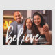 Inspirational Christmas card magnet features believe in white brush script and one full photo with customised name. Shop this store for coordinating products and holiday colour options.