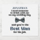 Modern typography bottle labels featuring typography script '' i need someone to drink with my on my wedding day and you are the best man for the job'' on a white background. Personalise with a name.