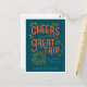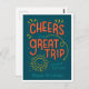 Cheers to a Great Trip Around the World Happy Birthday Modern Lettering Quote in Teal and Orange.