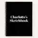 Modern minimalist black and white custom name personalised sketchbook / notebook.