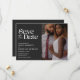 Modern minimal design with one vertical photo and trendy typography on black background. The text and photo can easily be personalised for a unique one of a kind design for your special day.