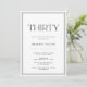 This is an elegant, minimalist and modern 5x7 30th Birthday party invitation. It is a simple and stylish typography design in classic black and white for a chic and timeless look. Please contact the designer for any queries about this design.