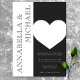 Elevate your wedding invitations with understated elegance. Our minimalist design features a striking black and white palette. Simple typography and clean lines create a sophisticated invitation that will leave a lasting impression on your guests. A white heart adds a touch of romance. Created by Simply Farmhouse Press.