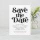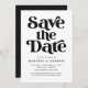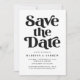 Modern save the date card featuring "Save the Date" displayed in bold black lettering with a white background. Personalise the stylish save the date card with your names, wedding date, location, wedding website, and other important wedding details.