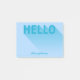 Modern Blue "Hello" with a gradient long shadow against a light blue background.