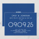 Modern Simple Typography Mid Blue Wedding. Modern elegance with this fully customisable stylish text only design. Easily personalise the words and, if you have a wedding website, automatically generate a QR code for it on the back by replacing the sample URL to that of the URL of your wedding website. You can delete the sample QR code if not required via the edit further option, where you can also edit text colours and styles and background colours on each side if you so wish.