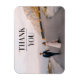 Express your gratitude with this modern thank you magnet. Featuring "Thank You" in a bold font with personalised names tucked in between over a white background.