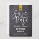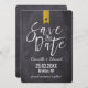 Script Typography Chalkboard Gold Banner Photo Save the Date Card. You can customise the bride and groom names, the wedding date, city and state as well as the info for what the wedding guests can expect next.This is a non photo version of the design. In the collection you will find several options with photo. If you need help personalising this save the date card drop me a line at requests@prettygreetings.co.uk