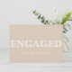 You are engaged - let's celebrate! Modern engagement announcement with elegant cream background and white unique typography - a clean and modern engagement party invitation. Customise this template with your own photo on the back and edit the text to fit your engagement party.