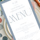 Set the tone for your wedding celebration with this modern yet classic menu, presented in a sophisticated dusty blue. The elegant serif typography and the prominent couple's monogram create a refined and personalized feel for your special day. This menu is designed to elegantly list your culinary offerings, from delightful starters to decadent desserts, providing a seamless experience for your guests. Its clean lines and understated design ensure it will be a beautiful addition to any reception table setting.