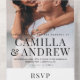 A modern type overlay with large names and a full bleed photo are the features on this all in one wedding invitation with tear off response card. Click the edit button to customise this design.