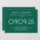 Modern Simple Typography Emerald Green Wedding. Modern elegance with this fully customisable stylish text only design. Easily personalise the words and, if you have a wedding website, automatically generate a QR code for it on the back by replacing the sample URL to that of the URL of your wedding website. You can delete the sample QR code if not required via the edit further option, where you can also edit text colours and styles and background colours on each side if you so wish.