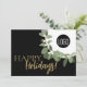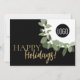 With its modern and stylish design, this flat card showcases a green wreath illustration in gold, green, and white. It adds a touch of elegance and sophistication to your holiday greetings. The words "Happy Holidays" are displayed in a gold colour hue using modern typography, further enhancing the contemporary look of the card.
