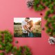 This modern holiday photo card features one horizontal "full-bleed" photo and a modern typography greeting which says "JOYFUL". The back of the card is a coordinating red background colour. You can also add another photo and/or additional text to the back!