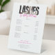 Keep a pedestal sign with prices of your services and four items in each service. This sign is designed to complement your bold lash business branding. Featuring the same striking “LASHES” typography with a dramatic close-up eye photo, this sign combines style and function. The clean layout provides prices for your lash extension services in professional way - perfect for lash artists, estheticians, and beauty pros with a a high-end, cohesive brand.