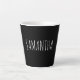 Modern hand lettered style mug with white lettering on black mug. Stylish modern personalised latte mug. Add your own name or initials. Choose from our many typefaces if you prefer a different style type.
