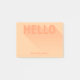 Modern Orange "Hello" with a gradient long shadow against a light orange background.