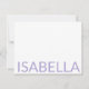 This playful note card features a large-scale name in modern lavender block typography across the bottom edge, set against a clean white background. Ideal for kids learning to write notes, sending thank yous, or personalising school stationery with a fresh, stylish touch.