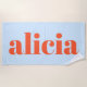 Modern Typography Personalized Name Blue Orange Beach Towel