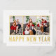 Happy New Year! Send your warm wishes this season with this customisable photo collage New Year card. It features simple typography. Personalise by adding your photos, names, year and other details. This gold foil New Year card is available in other colours and cardstock.